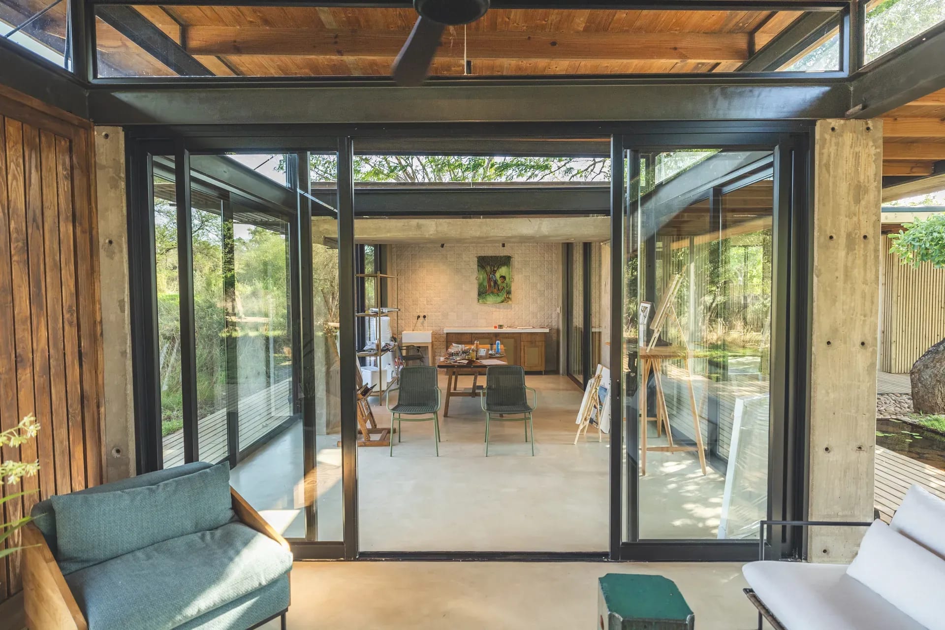 At Ivory Lodge, creativity and wilderness converge. Acclaimed artists live and work on site, transforming the studio into both gallery and working space. Guests witness art being created in real time - from first brushstroke to final detail - whilst engaging with creators inspired by the exact landscape surrounding you.